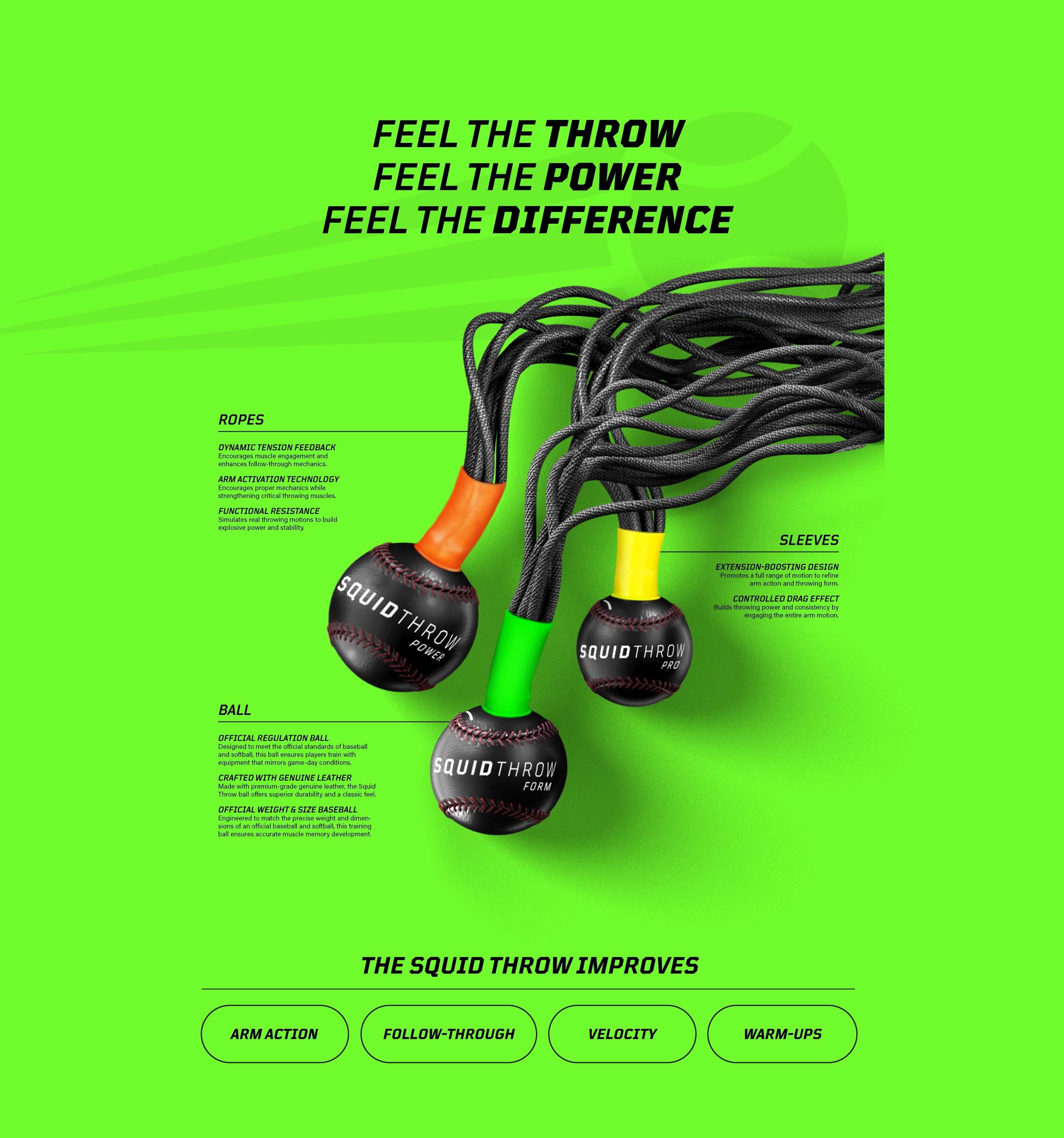 Mastering the perfect throw is the ultimate game-changer. The Squid Throw is a 3-in-1 throwing tool. It refines your mechanics, sharpens accuracy and boosts velocity, giving you the edge to dominate, while improving muscle memory and strengthening your shoulder. Don’t just practice—practice smarter and throw harder with the Squid Throw.